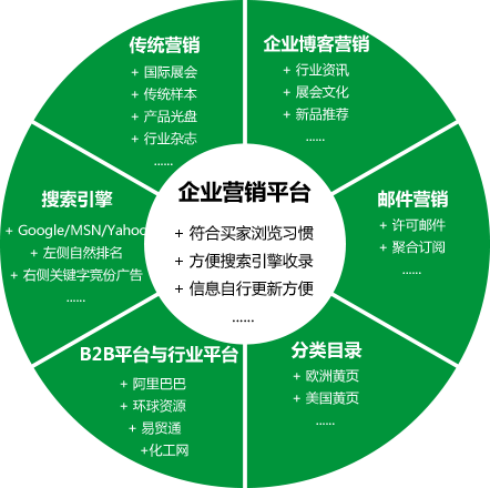外貿(mào)整合營銷是外貿(mào)企業(yè)建立一個以自身企業(yè)外貿(mào)營銷 型網(wǎng)站為核心的營銷模式,以國外買家的需求和習(xí)慣為 基準(zhǔn)進行營銷渠道整合,保證海外買家能通過多種途徑 準(zhǔn)確獲得外貿(mào)企業(yè)的產(chǎn)品信息的一套營銷方法。