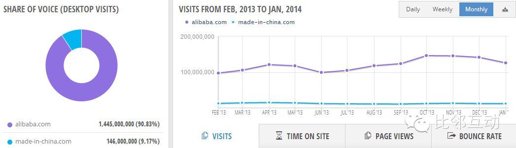 從網(wǎng)站日流量看,阿里巴巴中國制造網(wǎng)的10倍。