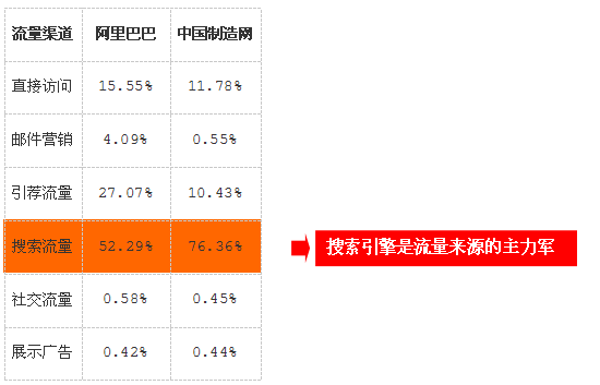 從平臺(tái)的流量情況,阿里巴巴和中國制造網(wǎng)過去一年的流量對比數(shù)據(jù)中,不僅可以了解阿里巴巴和中國制造網(wǎng)平臺(tái)優(yōu)劣勢,還能夠從各種渠道特點(diǎn)中發(fā)現(xiàn)什么才是平臺(tái)流量來源的主力軍。