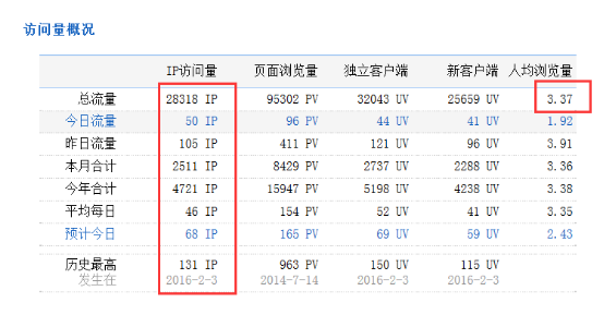 網(wǎng)站整體流量情況展示: