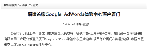 南方區(qū)最重要的Google AdWords 體驗(yàn)中心落戶廈門啟動(dòng)運(yùn)營(yíng) 感謝政府與媒體的支持與持續(xù)關(guān)注